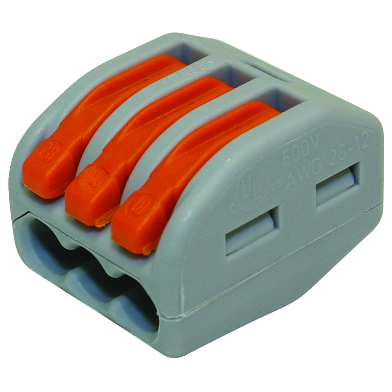 Steckklemme CLASSIC 3x 0.08-4mm2, mit Betätigungshebel, für alle Leiterarten, grau/orange, VPE 5 Stk.