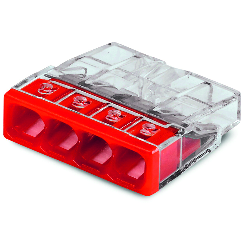 Steckklemme COMPACT 4x 0.5-2.5mm2, für eindrähtige Leiter, transparent/rot, VPE 100 Stk.