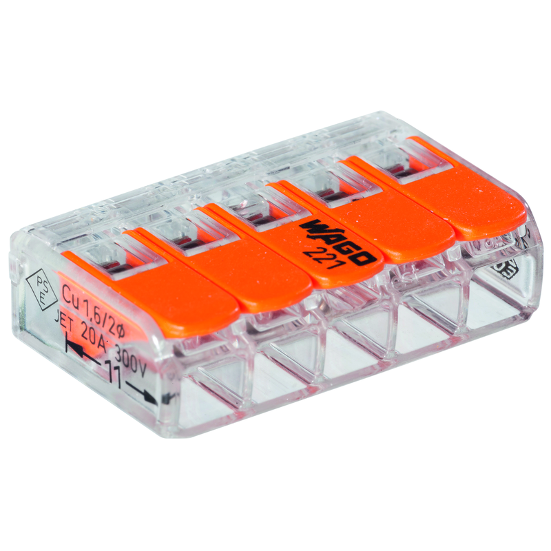 WAGO Steckklemme COMPACT 5x 0.14-4mm2 mit Betätigungshebel tr/or VPE 25 Stk.